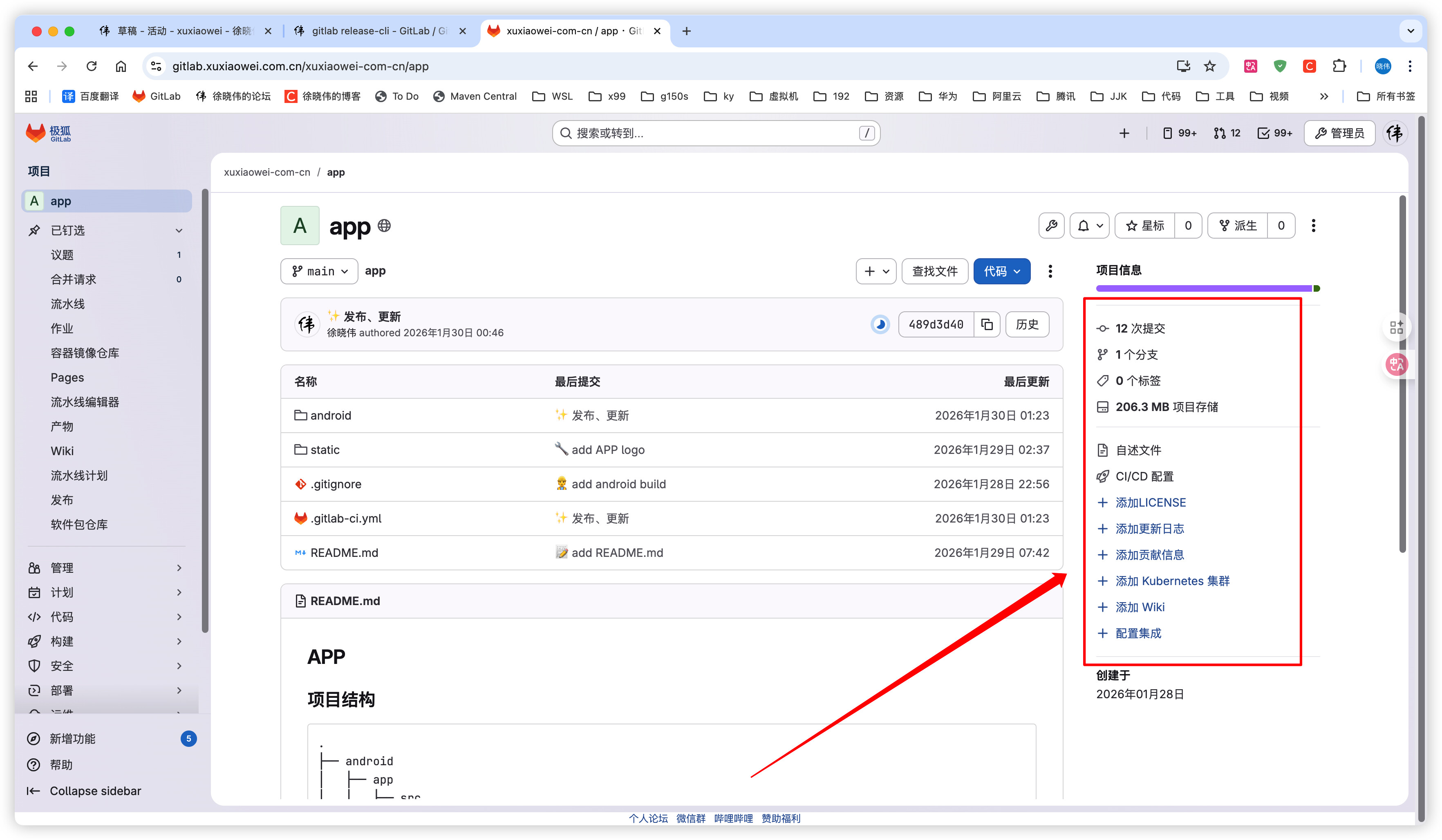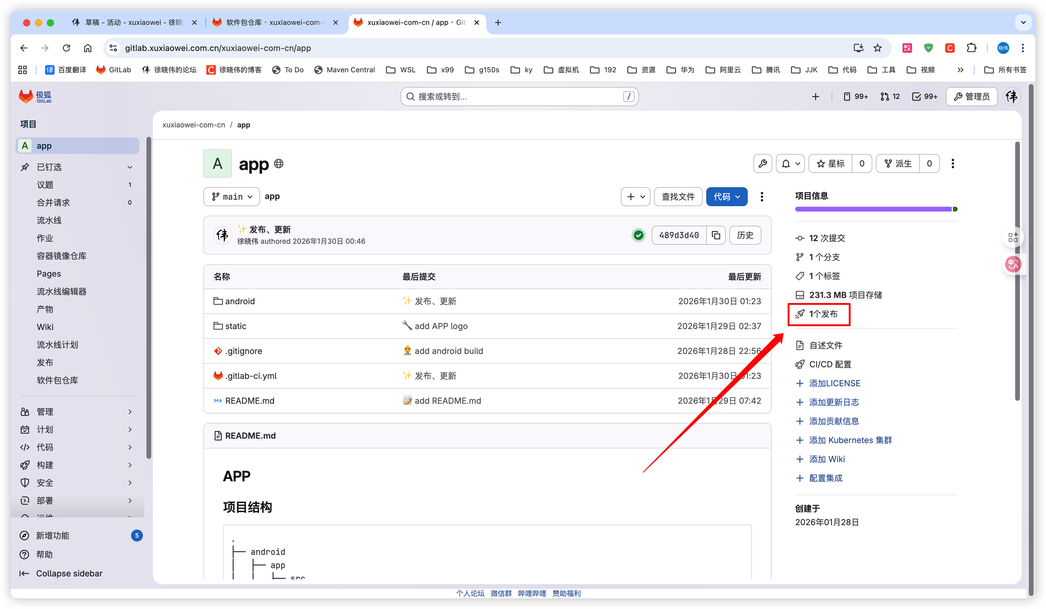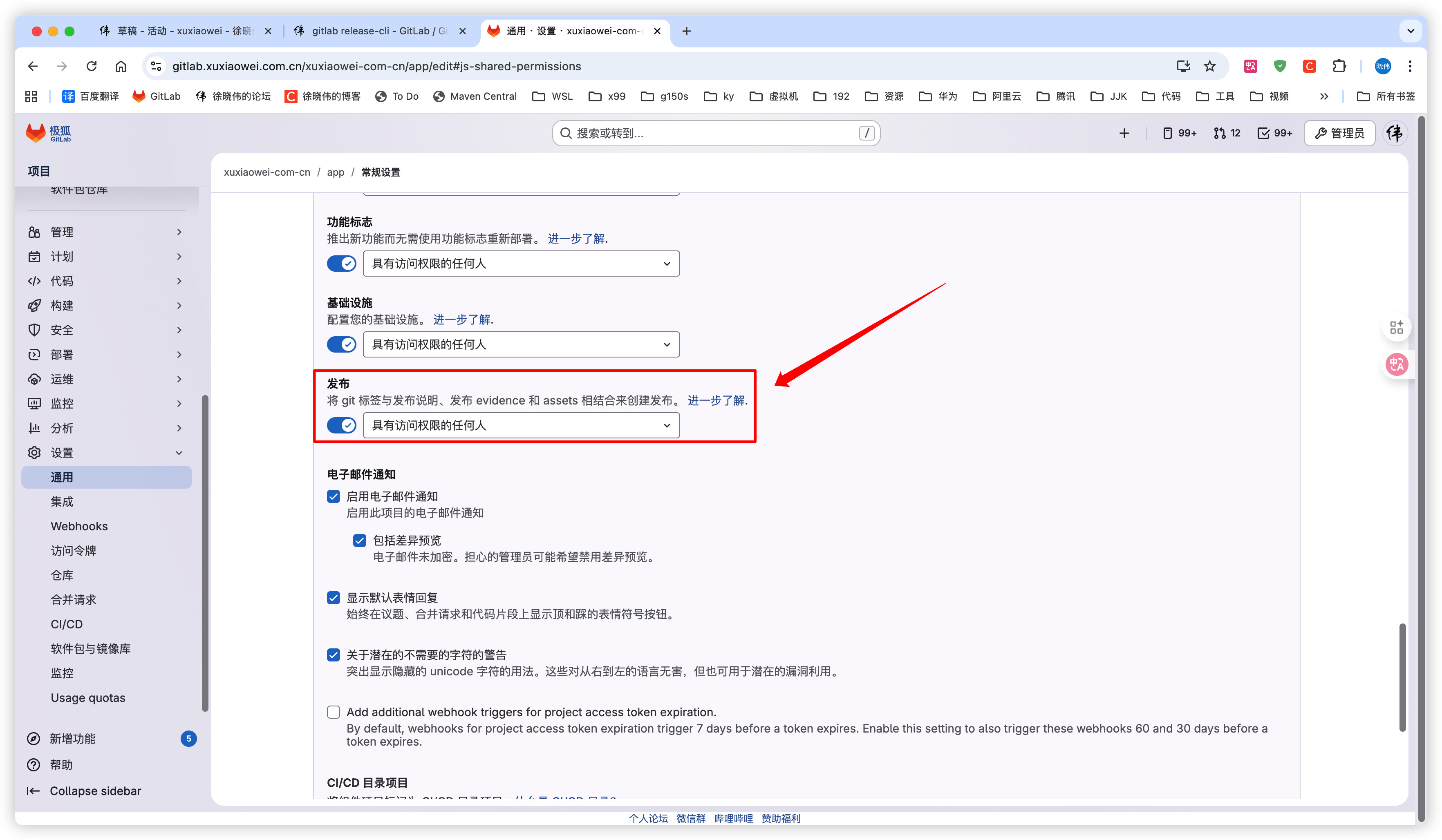 - 单独创建一个空项目,GitLab CI/CD Runner 中使用空项目的 ID、路径等配置,用于发布软件,这个空项目设置为开放,这样一来既可以使用 GitLab 管理发布,也不用开放源代码。