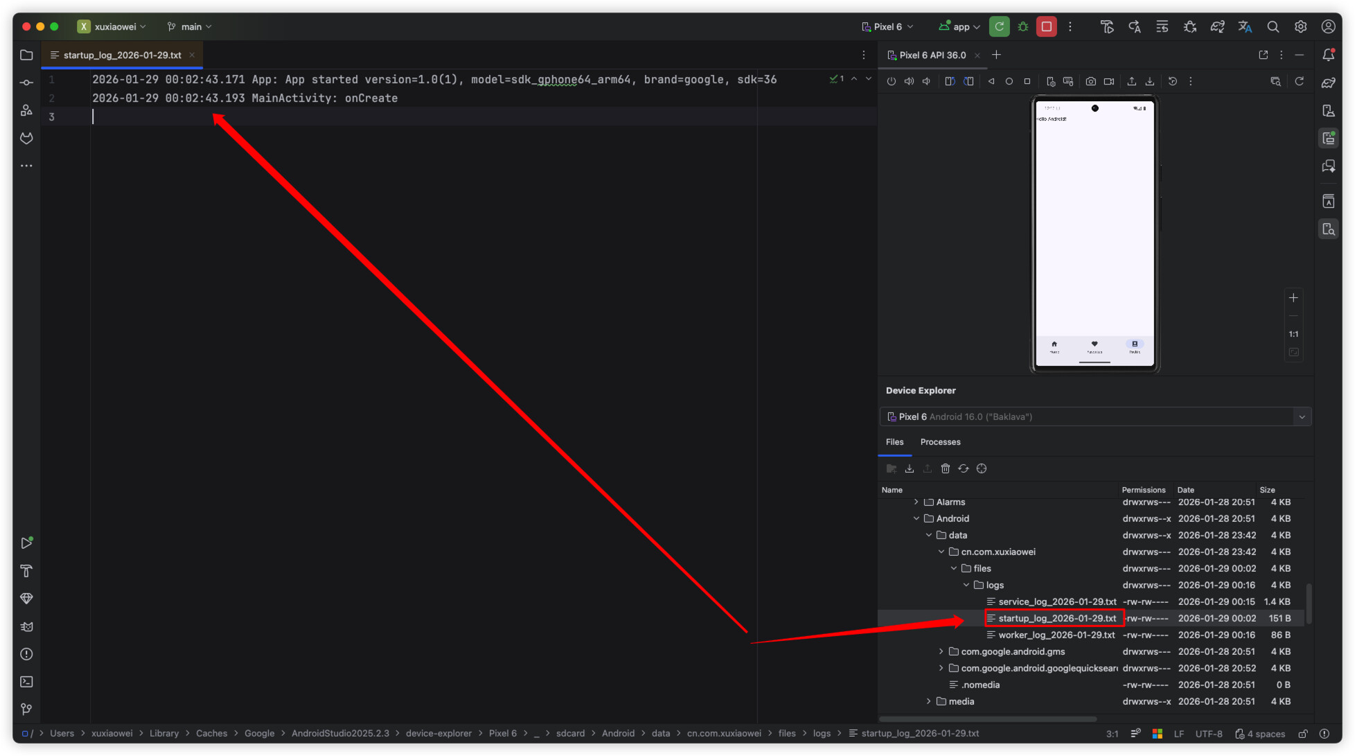 FileLogger.log(this, "startup", "App", "App started version=$appVersion, $deviceInfo")