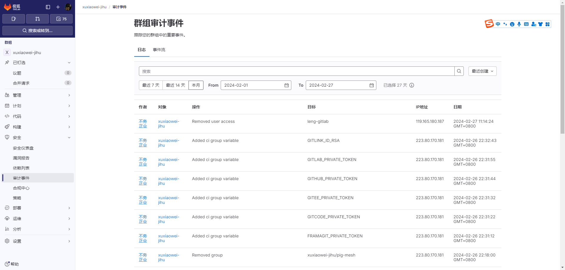 群组审计事件
