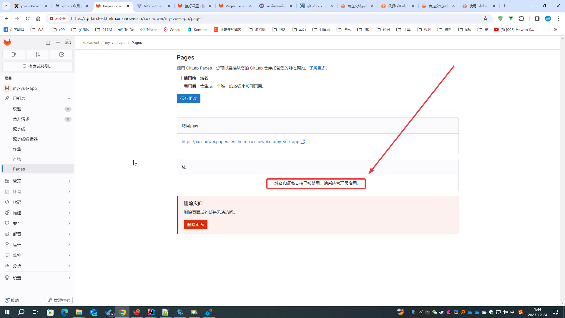 无法找到 my-gitlab-pages-tls secret,原因是开启了自定义 域名 SSL/TLS 证书后,需要创建一个 TLS secret