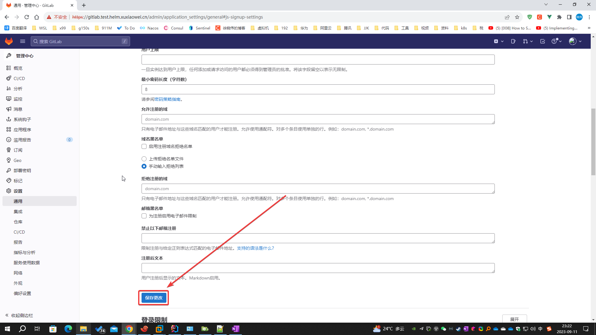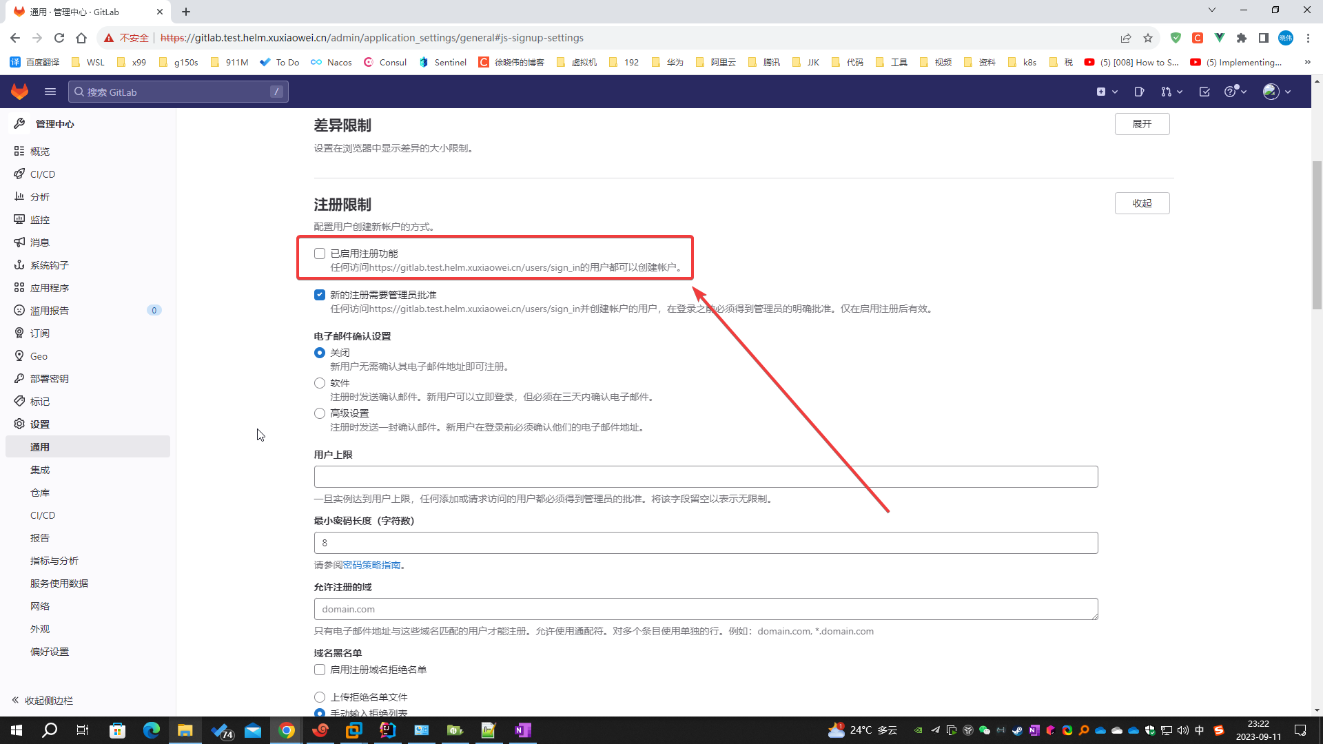访问 https://gitlab.test.helm.xuxiaowei.cn ,浏览器提示: