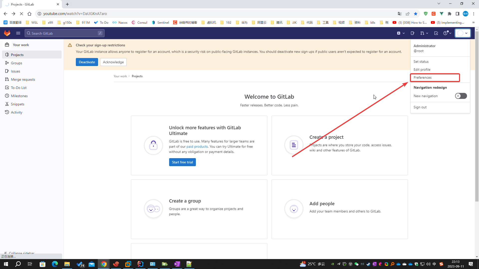 登陆 GitLab