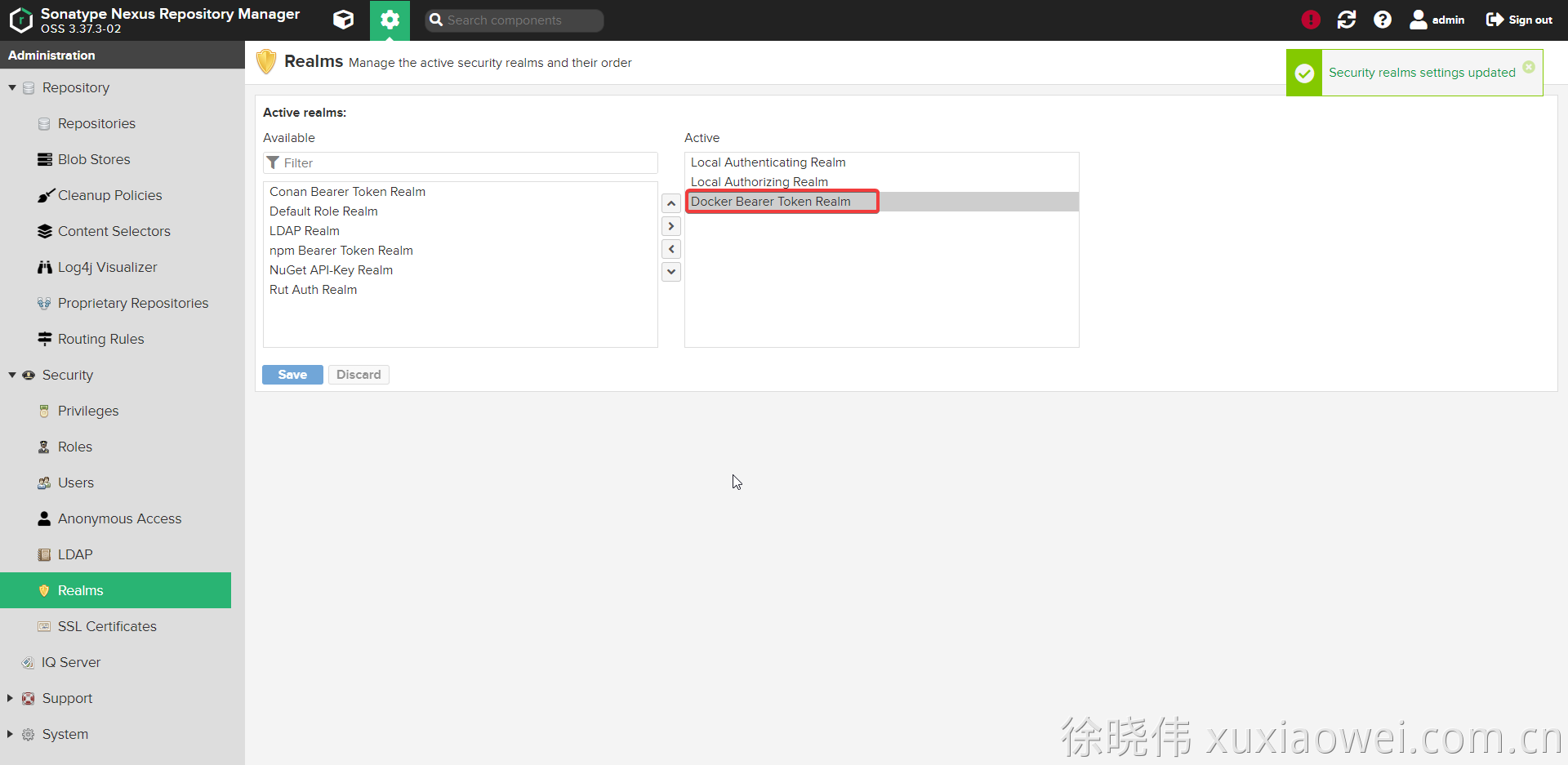 authority,请参考 私库搭建2:Nexus 配置 Docker 版 https 进行证书信任docker pull nexus.example.com:8000/library/maven:3.6.3-jdk-8[root@x99 ~]# docker pull nexus.example.com:8000/library/maven:3.6.3-jdk-8 3.6.3-jdk-8: Pulling from library/maven 004f1eed87df: Pull complete 5d6f1e8117db: Pull complete 48c2faf66abe: Pull complete 234b70d0479d: Pull complete d7eb6c022a4e: Pull complete 347c03cf94f8: Pull complete 914dd506c750: Pull complete d7d7fe135d55: Pull complete 71a3a5508994: Pull complete 73dccb1622e9: Pull complete Digest: sha256:ac624d39dd0b7bed827d4b0d1bbaeb457012e0cba0fb6c53ce34b00bed16ec08 Status: Downloaded newer image for nexus.example.com:8000/library/maven:3.6.3-jdk-8 nexus.example.com:8000/library/maven:3.6.3-jdk-8 [root@x99 ~]# -
