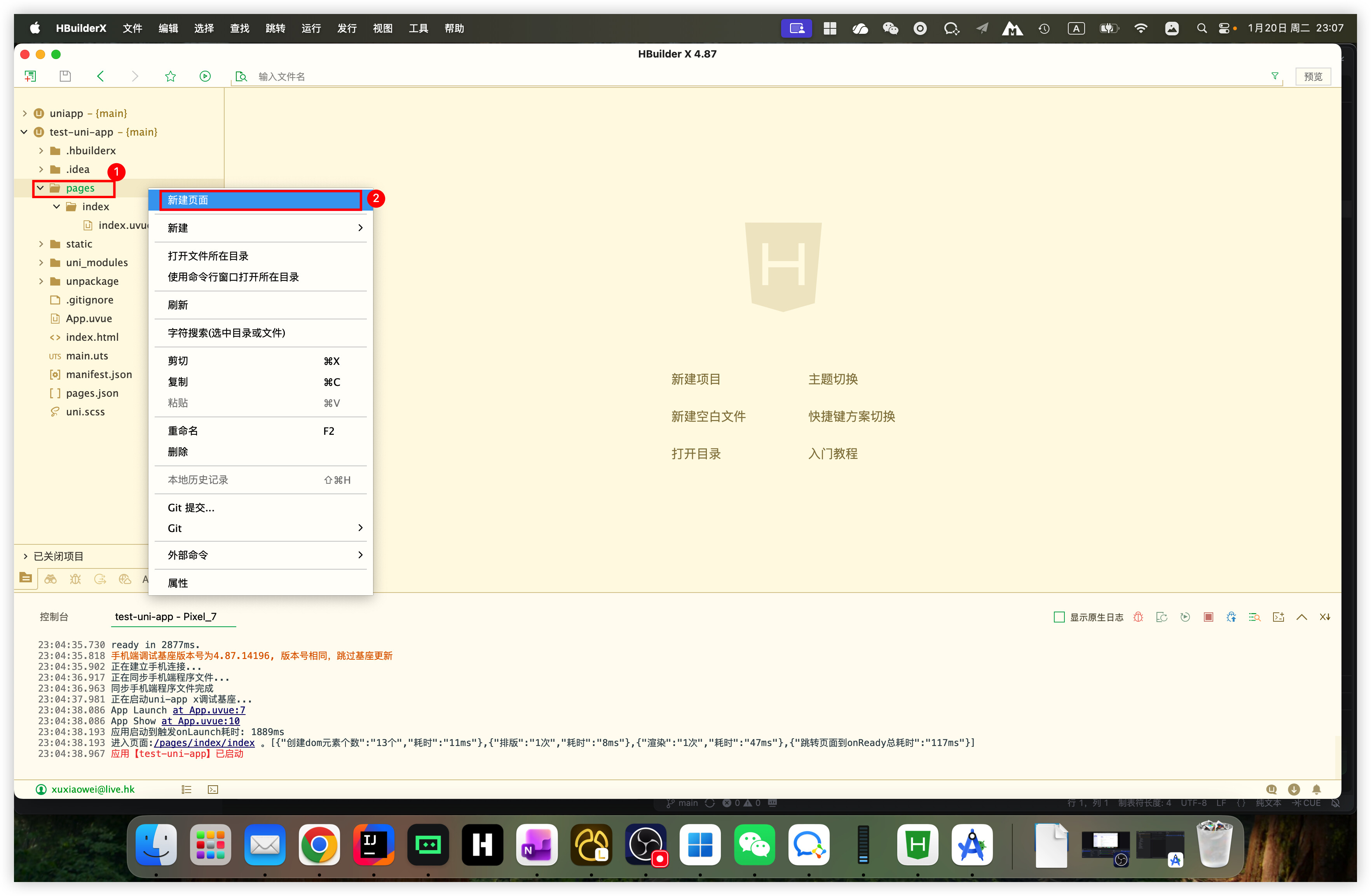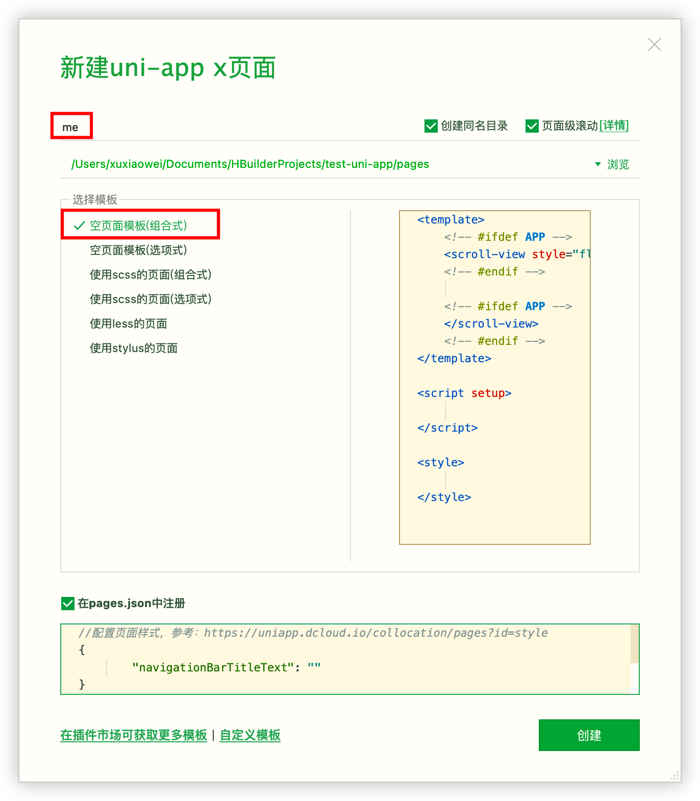 - 勾选 在pages.json中注册