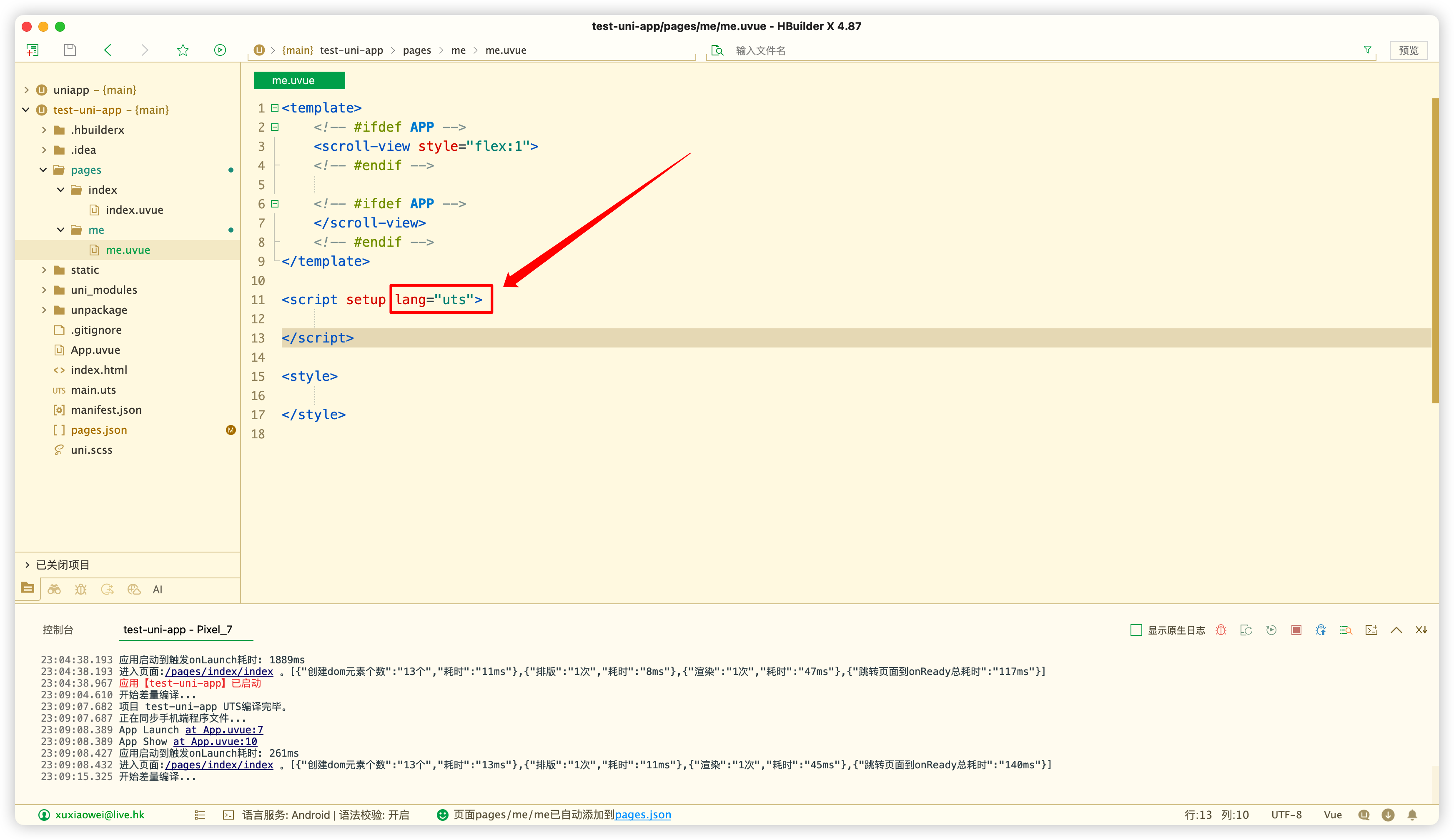 修改script使用lang="uts"